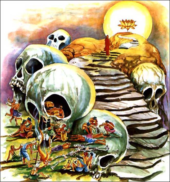 由于伟大的慈悲心,莲师给予懒惰的人类及无知的动物这些咒语,让他们得以从下三道获得解脱,最终证入佛道。